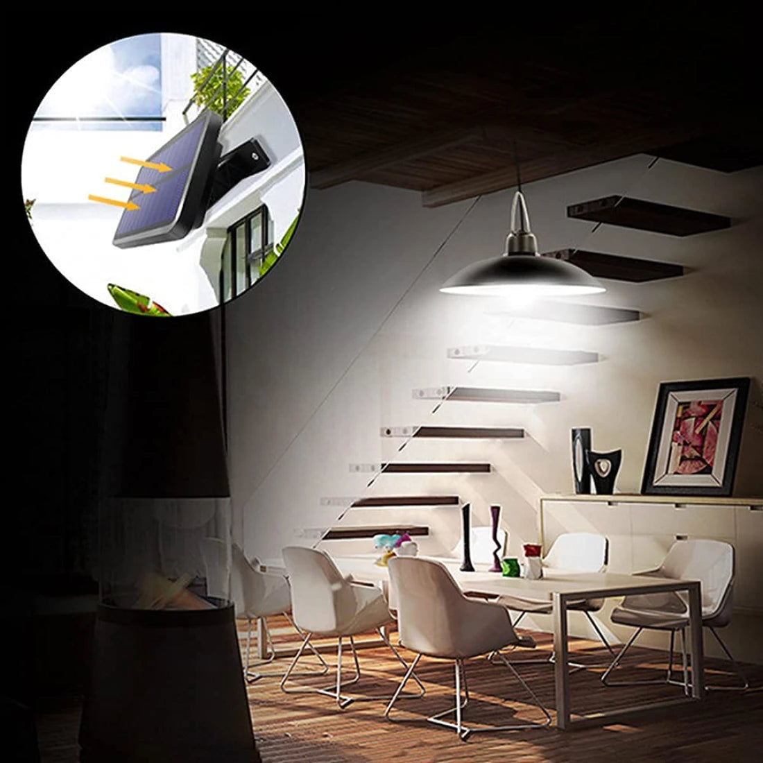 Lampa solara suspendata este potrivita ca sursa de iluminat pentru gradini, curti, balcoane, case, insule de bucatarie, coridoare, restaurante, dormitoare, cafenele, baruri, cluburi.